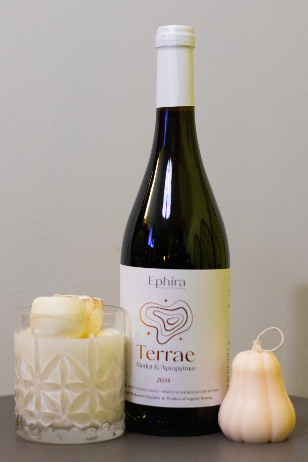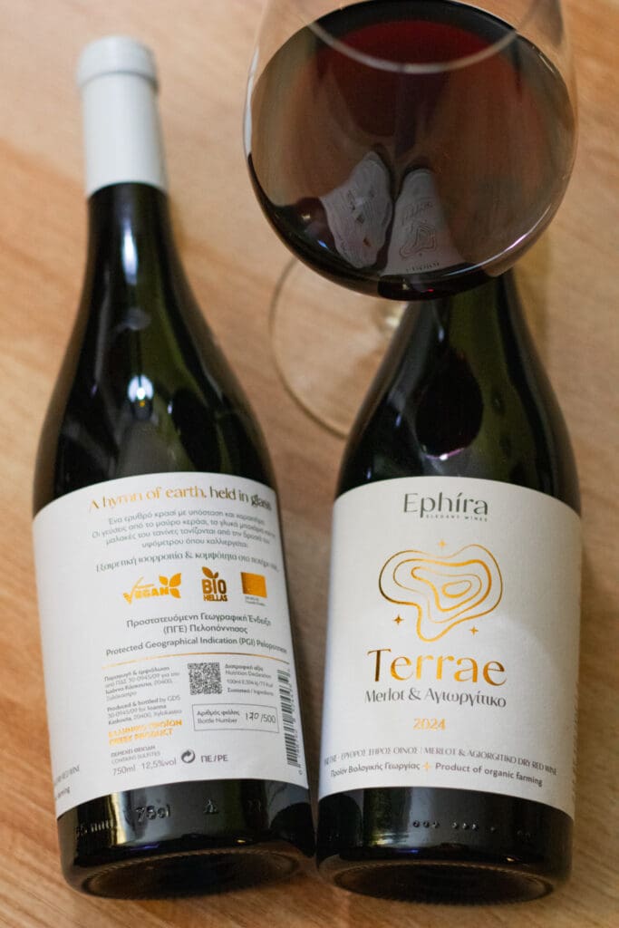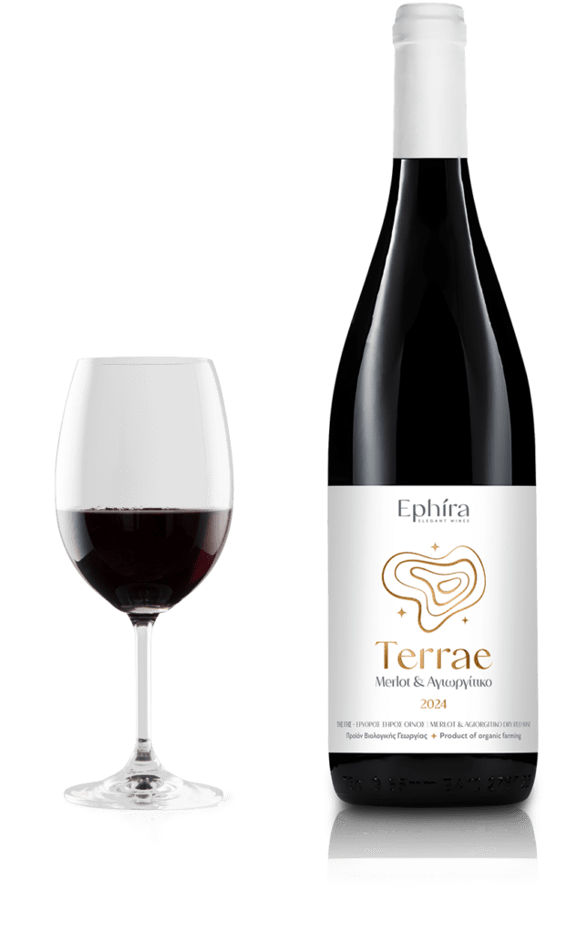 Το όνομα Terrae , στα λατινικά «της Γης» και αποτυπώνει ακριβώς αυτό που εκφράζει το κρασί: τον χαρακτήρα και τη ζεστασιά της Κορινθιακής γης. Μια περιοχή που χαρίζει στα κόκκινα κρασιά αρώματα ζουμερών φρούτων, δομή και φυσική φινέτσα.