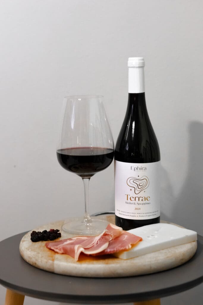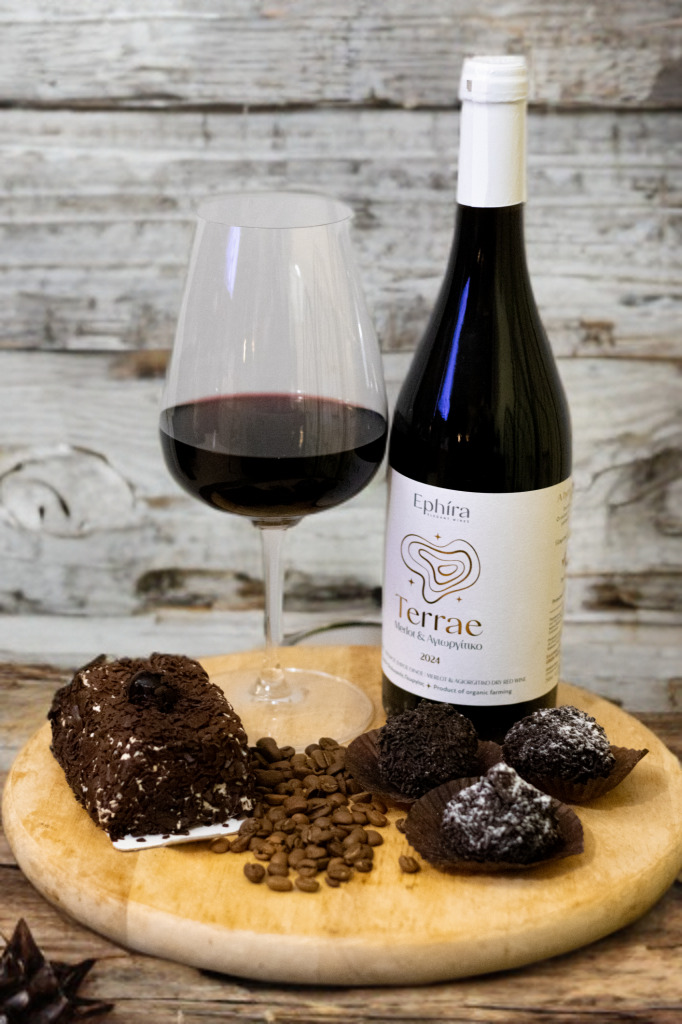 Το Τerrae είναι ένα κομψό, ευκολόπιοτο blend Merlot–Αγιωργίτικο που συνδυάζει τη βελούδινη υφή του Merlot με το ζουμερό χαρακτήρα των κόκκινων φρούτων του Αγιωργίτικου. Στη μύτη κυριαρχούν μαλακά αρώματα κόκκινων φρούτων και απαλές νύξεις μπαχαρικών. Tο στόμα είναι στρογγυλό, γεμάτο και ισορροπημένο ενώ η επίγευση μακρά και απολαυστική.
